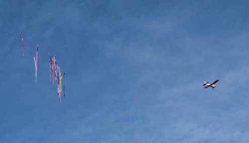 Modely letadel vystřídaly draci nejrůznějších tipů, barev i velikostí. Do přehlídky se přihlásilo 54 účastníků, ale řada dalších si létala jen tak. Porota, složená ze zkušených modelářů, ocenila dvanáct, draků, jejichž "pouštěči" dostali kromě diplomů drobné ceny. Potěšitelné bylo, že proti loňsku opět přibylo draků doma zhotovených. Během přípravy diplomů ukázali akrobacii rádiem řízených modelů Václav Polák a Ondřej Kadečka z Benešova, František Sýkora z Mrače pak ze svého "bombardéru" Méďa Béďa shodil nadšeným dětem více než kilogram bonbónů - spoustu z nich opatřených atraktivními barevnými stuhami.