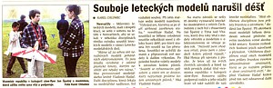 Modely s motory tř. 300: 1. Jaromír KUČERA, LMK Bechyně; 2. Jaroslav BARTŮNĚK, Praha 4; 3. Jiří VESELOVSKÝ, Praha 213; 4. Marek PLICHTA, Aviatic Club Turnov; 4. Vladislav PLICHTA, Aviatic Club Turnov; 4. Jan KRAUS, Praha.